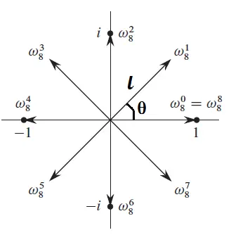 显然,l = 1 , θ = 2 π n l=1, \theta=\frac{2\pi}{n} l = 1 , θ = n 2 π 。