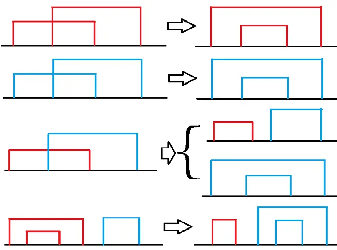 如果我们有 x1≤x2≤x3≤x4,那么我们有这样 4 中情况: